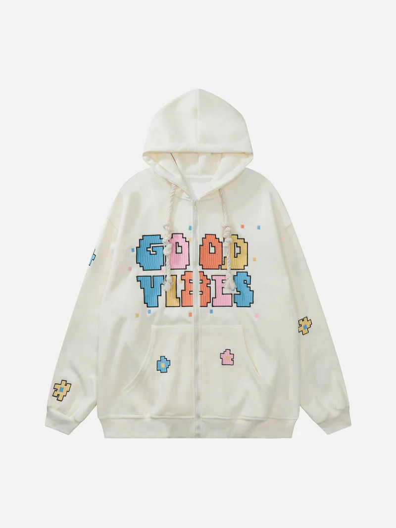 Colorful Letter Print Zipper Hoodie