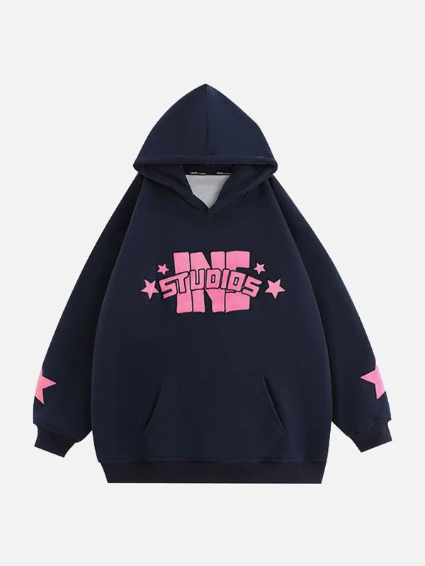 Letter Foam Star Print Hoodie